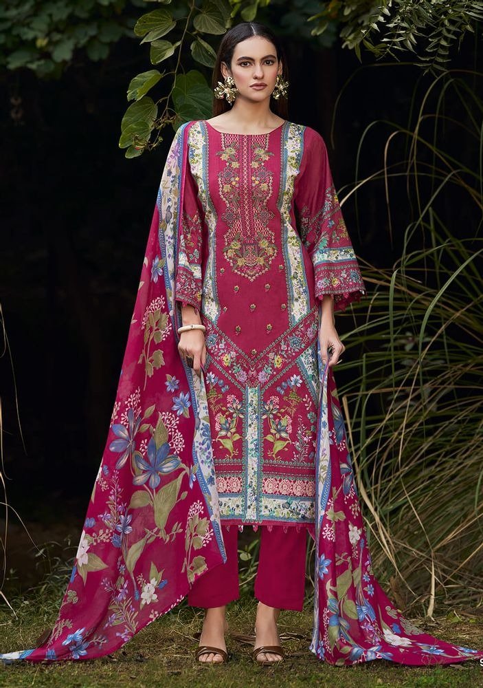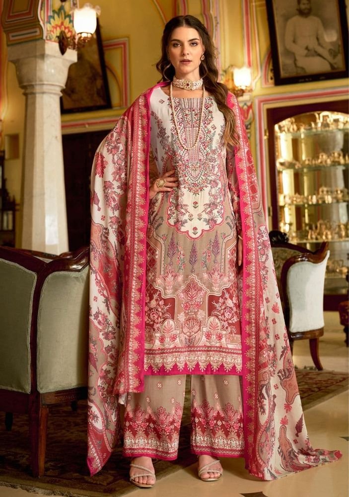 Naira Vol 125 by Belliza is a premium designer suit collection crafted for comfortable yet elegant everyday and festive wear. Made using 100% pure cotton, this collection features beautiful digital prints enhanced with exclusive heavy self embroidery, giving each suit a refined and classy appeal.